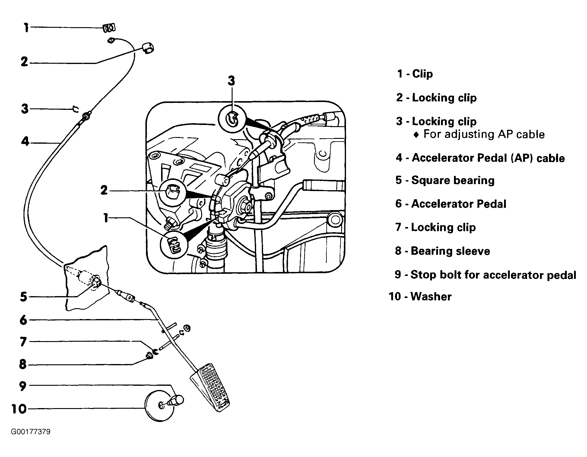 The throttle cable may also be referred to as Accelerator Pedal (AP) linkage.