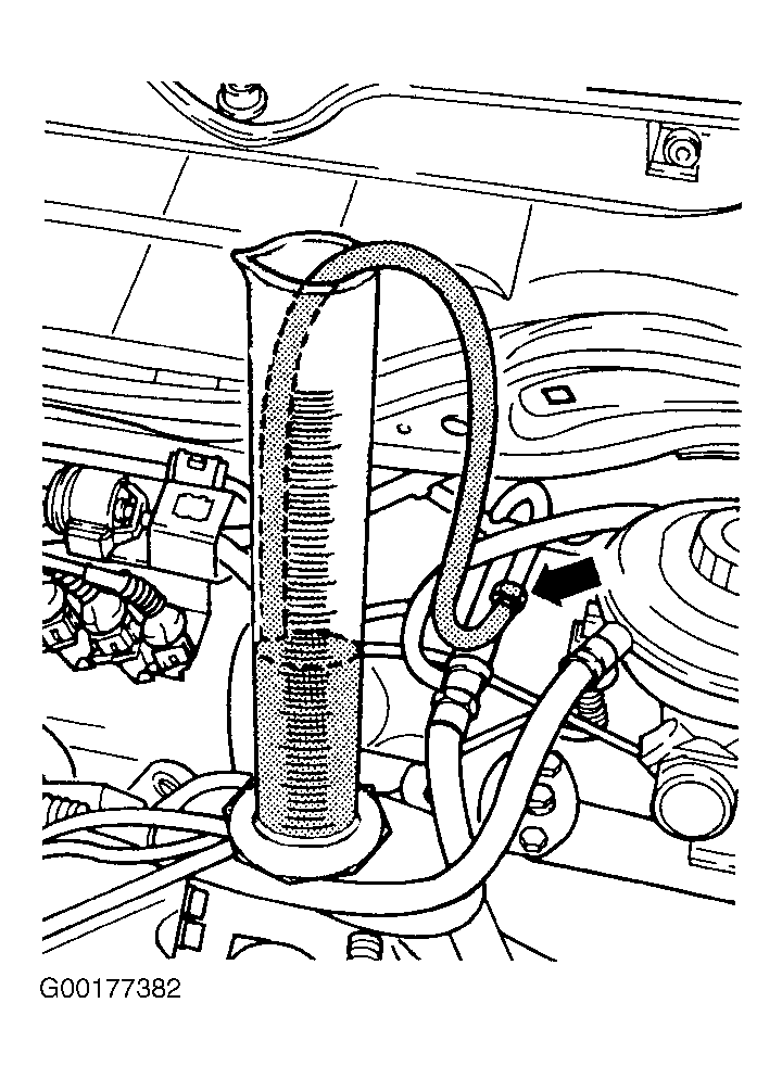 - Attach hose to fuel supply line, place other end of hose into a measuring glass. See Fig 2 .