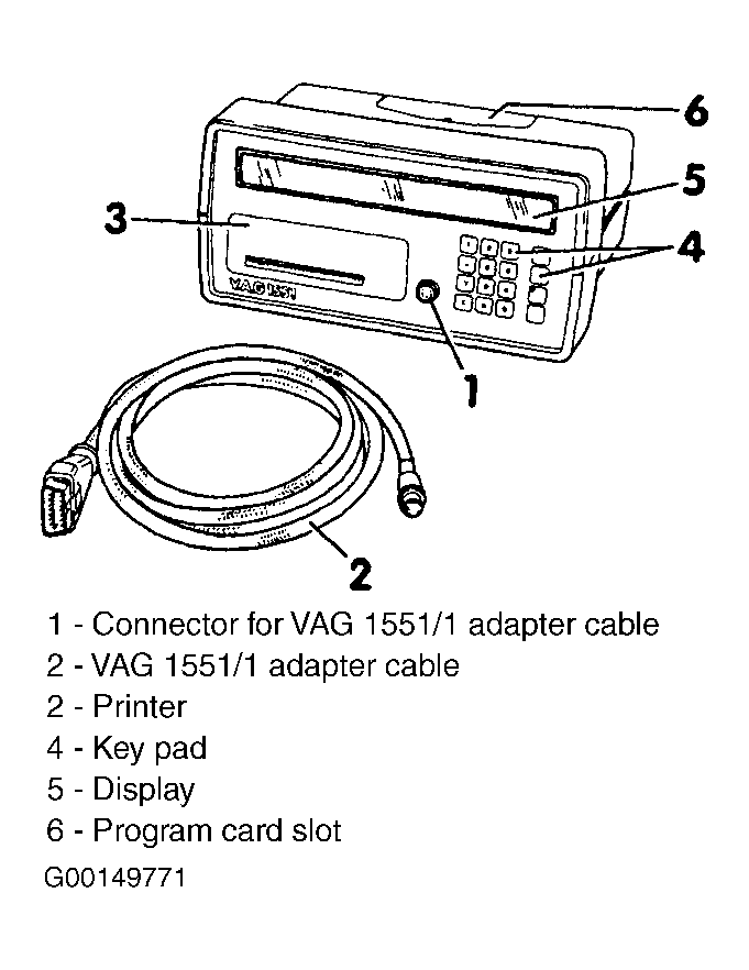 To properly diagnose vehicle, it is recommended to use connector test kit (VW 1594) and scan tool (VAG 1551) with harness adaptor (VAG 1551/1). See Figure