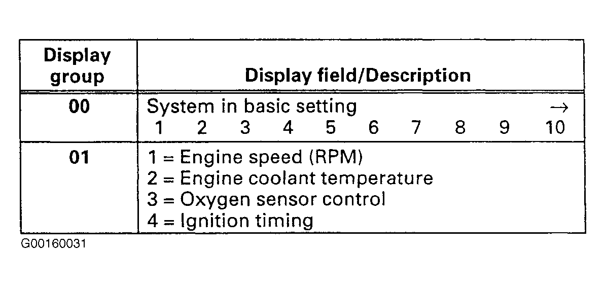 Basic setting function is carried out with the engine running. When in the basic setting function, the Motronic Engine Control Module (ECM) establishes the following conditions: