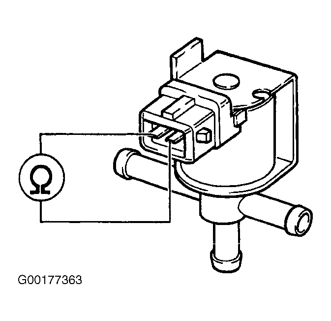 - Connect DVOM multimeter switched to resistance range to wastegate by-pass regulator valve, using adapters from (VW 1594) connector test kit. See Fig 2.