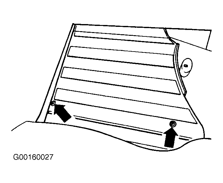 - With ignition switch in OFF position. Remove cover fasteners (arrows) from lower right "A" pillar. See Fig 1. Pull back carpeting in right front foot well.
