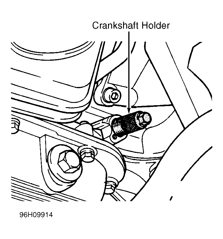 - Rotate engine crankshaft by hand to Top Dead Center (TDC) position. See Fig 1 . Remove Crankshaft Position (CKP) sensor from left side of cylinder block. Look and feel for TDC hole in crankshaft through opening in block. Thread crankshaft Holder (3242) into CKP sensor opening and tighten slightly. See Fig 2 .