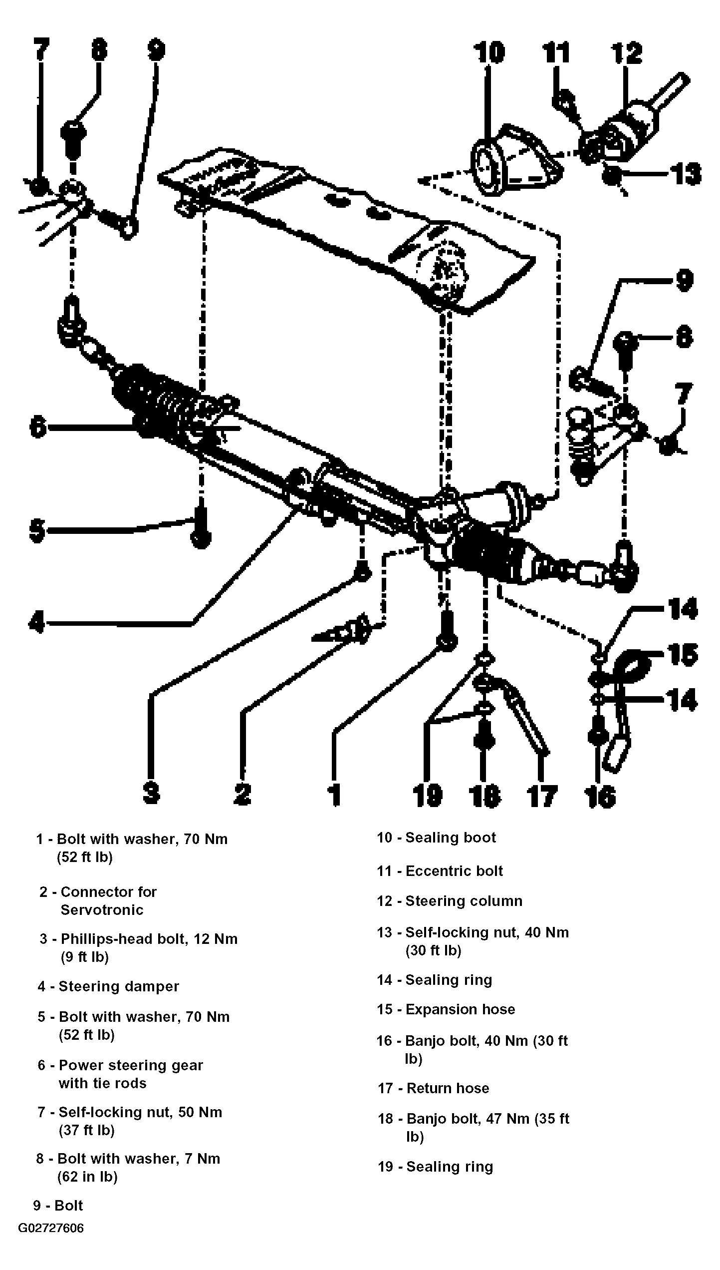 - Phillips-head bolt, 12 Nm (9 ft lb)
