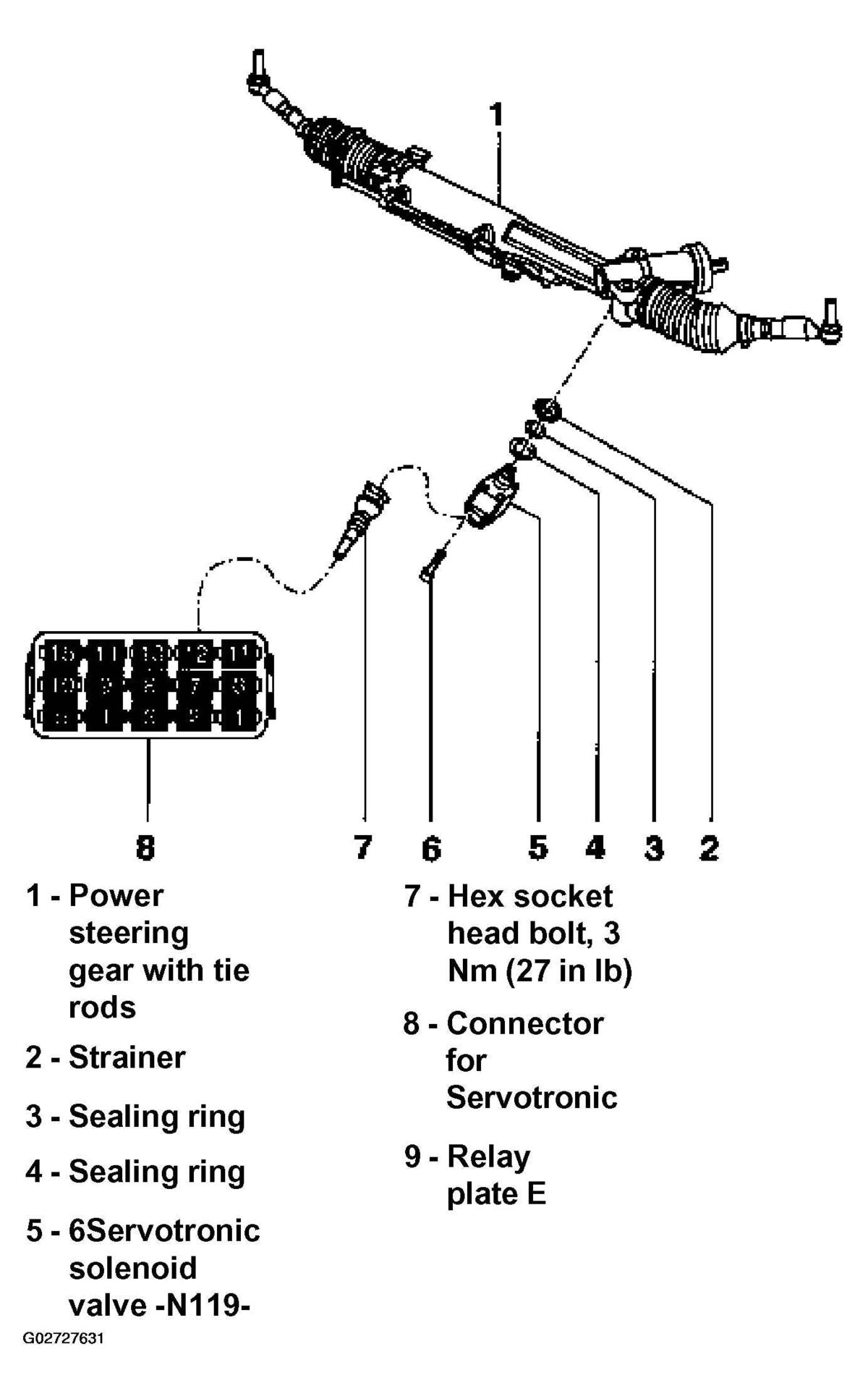 - Replacement of Servotronic solenoid valve -N119- involves removing power steering gear.