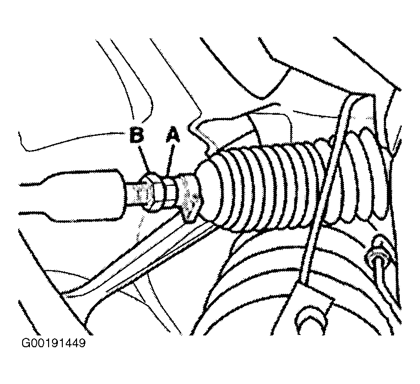 Tighten lock nut B to 30 ft. lbs. (40 N.m). Check toe-in again. After tightening lock nut B it is possible that the toe value may deviate slightly. If the measured toe lies within the tolerances, the adjustment is correct.
