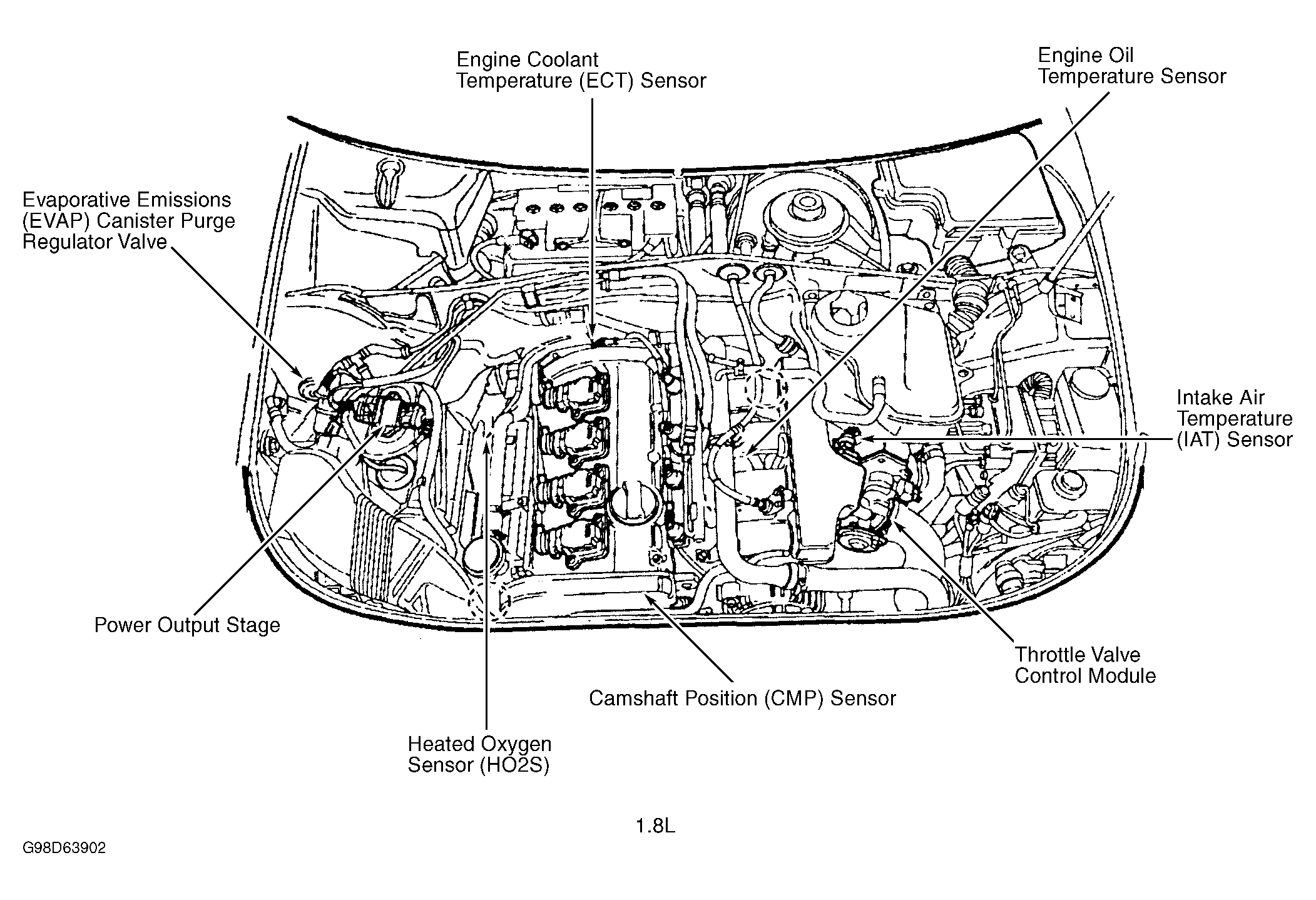 | Throttle Valve Control Module (1.8L) | On left side of engine, on intake manifold. See Figure. |