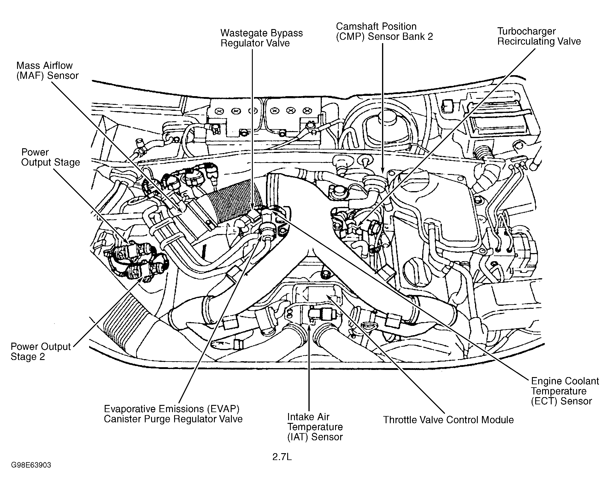 | Throttle Valve Control Module (2.7L) | On front of engine, on intake manifold. See Figure. |