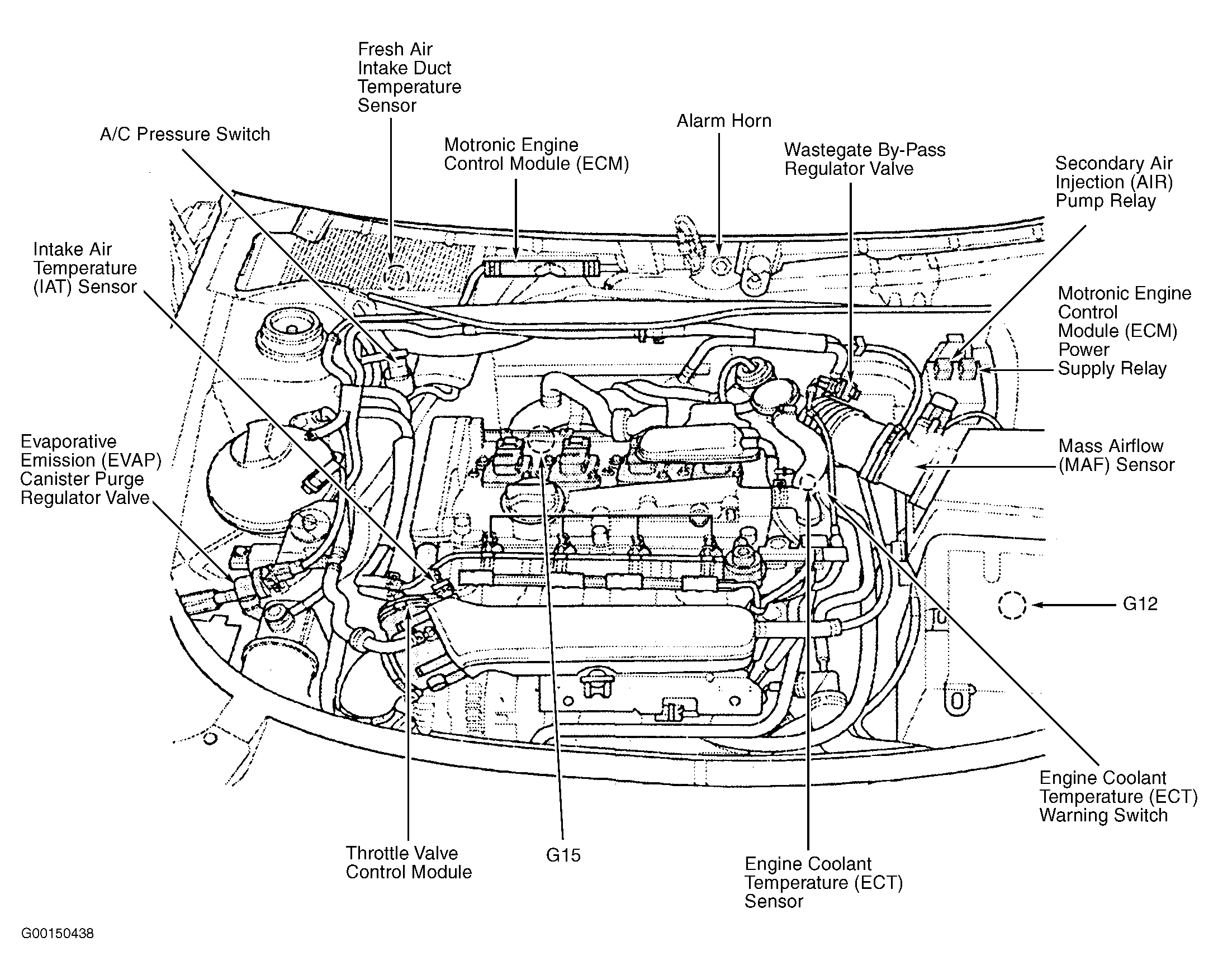| Motronic Engine Control Module (ECM) | In center of plenum, between firewall and windshield base. See Figure. |
