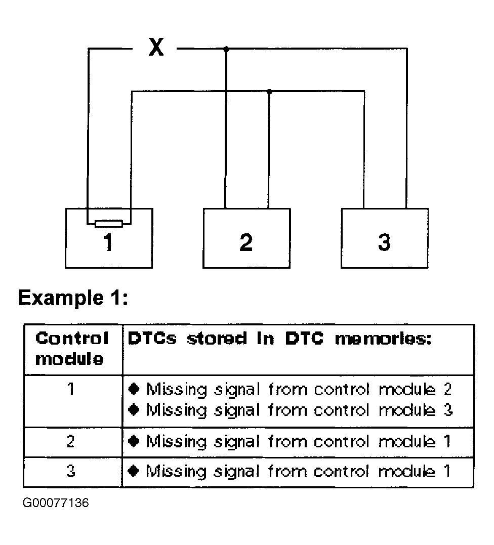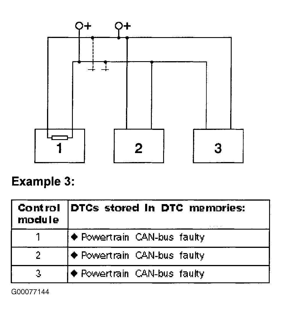 - Turn ignition off. Disconnect CAN-bus connected control module harness connectors. In examples 1 and 2, check for open circuits in bus wires of connected control modules. In example 3, check for short to voltage in bus wire circuits of connected control modules. If problem is found, repair as necessary. If no problem is found, replace suspect control module. Go to next step.