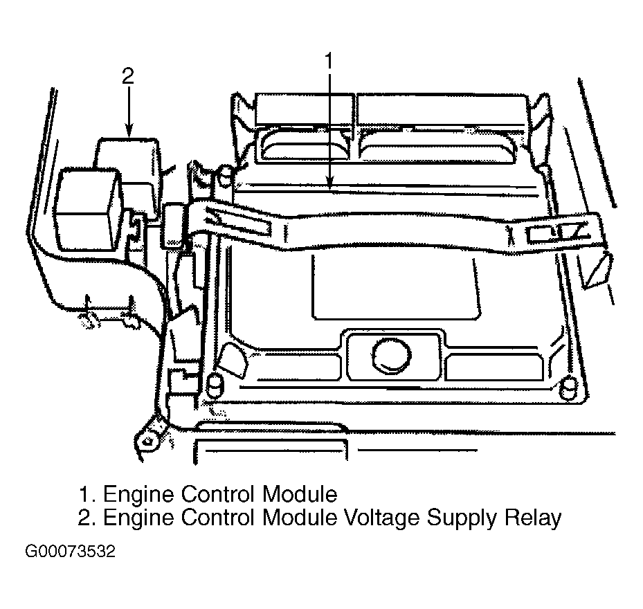 . Remove screws from heater core E-box cover. Using a flat-blade tool, carefully pry off retaining bracket. Disengage locking lugs and remove ECM harness connector. To install, reverse removal procedure.