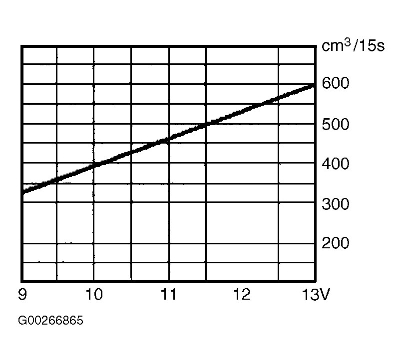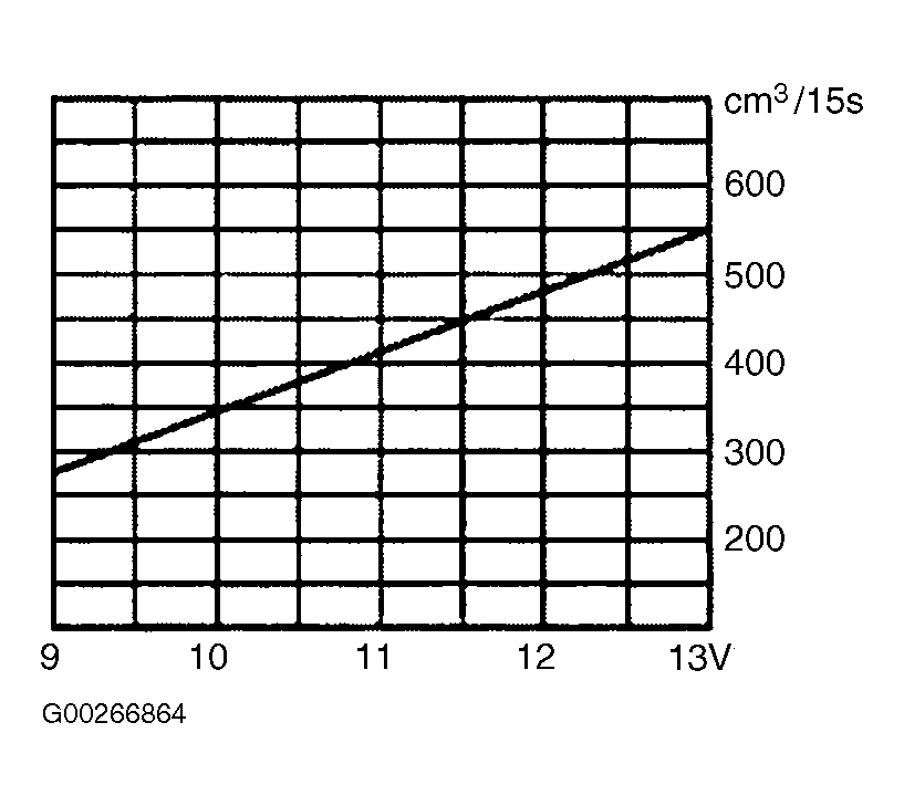 Application Specification System Pressure (1) With Engine Idling (2) 44 psi (3.0 bar) With Engine Idling (3) 36 psi (2.5 bar) Residual Pressure (4) 22-36 psi (1.5 bar) Minimum Volume In 30 Sec. (5) Engine Code AMU 5.6-6.2 ozs. (165-183 ml.) Engine Codes ATC & AWP 4.5-5.3 ozs. (133-157 ml.) (1) Battery voltage must be 11 volts or more when checking system pressure. (2) With fuel pressure regulator vacuum hose disconnected. (3) With fuel pressure regulator vacuum hose connected. (4) After 10 minutes. (5) Volume is dependent upon battery voltage and should be checked with battery fully charged. See Fig 1 . FUEL PUMP PERFORMANCE (3.0L)Application Specification System Pressure (1) With Engine Idling (2) 46-55 psi (3.2-3.8 bar) With Engine Idling (3) 55-61 psi (3.8-4.2 bar) Residual Pressure Cold Engine (4) 32 psi (2.2 bar) Warm Engine (4) 44 psi (3.0 bar) Min. Vol. In 30 Sec. (5) 3.0-4.2 ozs. (90-125 ml.) (1) Battery voltage must be 11 volts or more when checking system pressure. (2) With fuel pressure regulator vacuum hose connected. (3) With fuel pressure regulator vacuum hose disconnected. (4) After 10 minutes. (5) Volume is dependent upon battery voltage and should be checked with battery fully charged. See Fig 2 . FUEL PUMP PERFORMANCE (4.2L)Application Specification System Pressure (1) With Engine Idling (2) 50 psi (3.5 bar) With Engine Idling (3) 58 psi (4.0 bar) Residual Pressure (4) 36 psi (2.5 bar) Min. Vol. In 30 Sec. (5) 3.2-3.9 ozs. (95-115 ml.) (1) Battery voltage must be 11 volts or more when checking system pressure. (2) With fuel pressure regulator vacuum hose connected. (3) With fuel pressure regulator vacuum hose disconnected. (4) After 10 minutes. (5) Volume is dependent upon battery voltage and should be checked with battery fully charged. See Fig 2 . - If fuel pressure is within specification, connect vacuum hose to fuel pressure regulator. Pressure should drop as specified. See appropriate FUEL PRESSURE SPECIFICATIONS table. If fuel pressure is not within specification, check fuel pressure regulator, fuel pump and fuel lines and repair or replace as necessary.