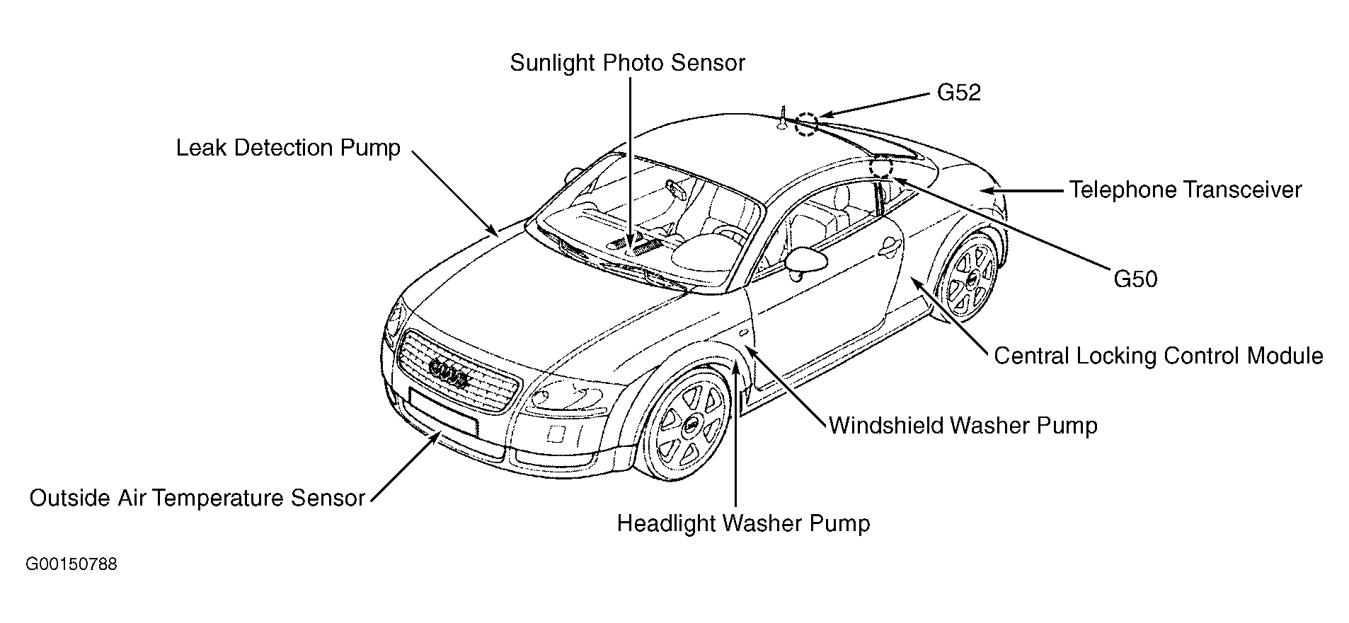 | Operating Electronics & Telephone Control Module (Roadster) | Behind subwoofer, on rear compartment wall. |