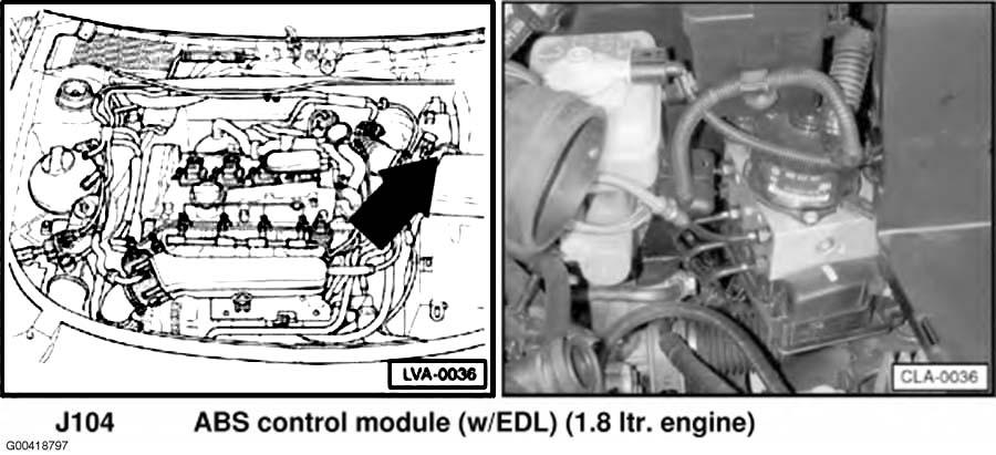 | ABS Control Module (W/EDL) (3.2L) | Left side of engine compartment. See Figure . |