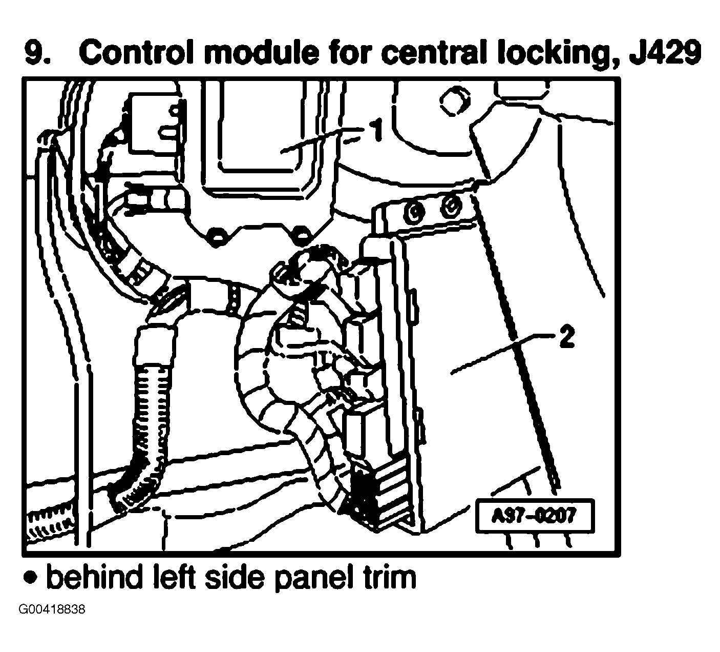 | Central Locking Control Module | Behind left trim panel. See Figure . |