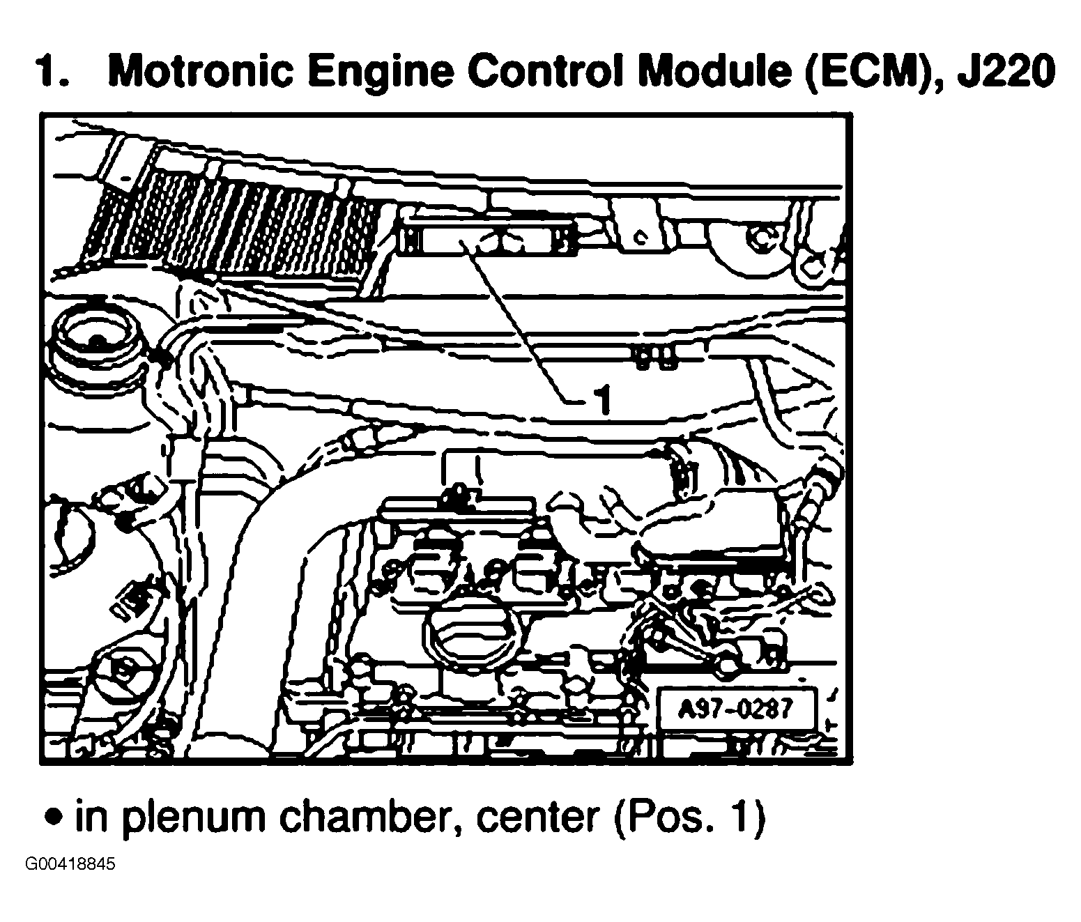 | Motronic Engine Control Module (ECM) | At base of windshield, in center of plenum. See Figure . |