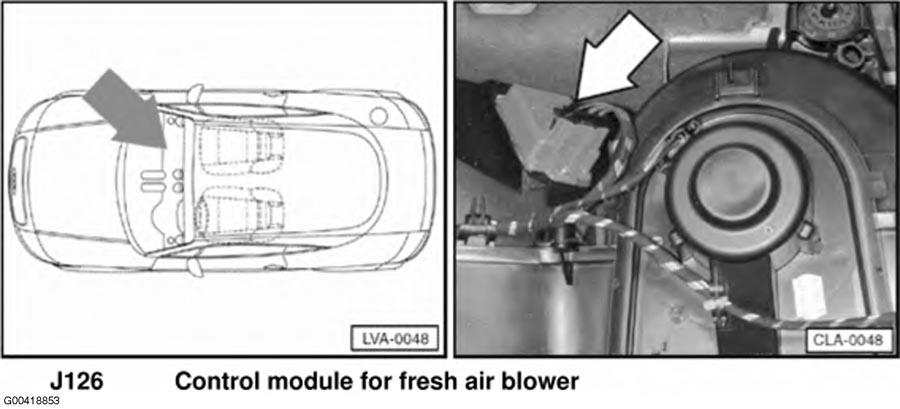 | Fresh Air Blower Control Module | Under right side of dash. See Figure . |