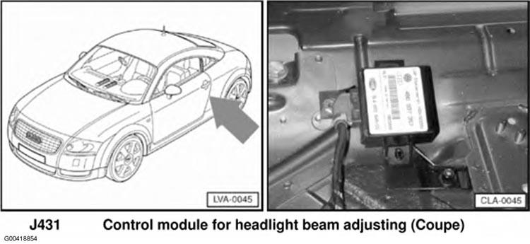 | Headlight Beam Adjusting Control Module (Coupe) | Behind left trim panel. See Figure . |