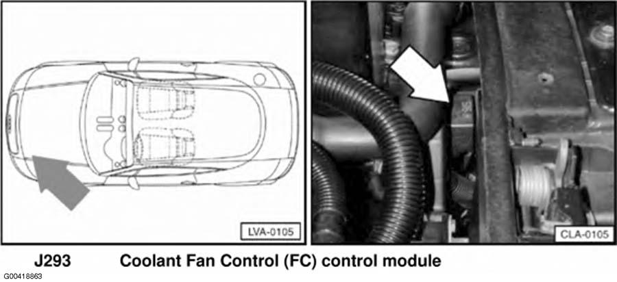 | Coolant Fan Control (FC) Module | On left front of engine compartment. See Figure . |