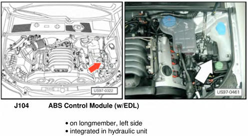| ABS Control Module (W/EDL) | At left side of engine compartment. See Figure. |
