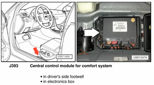 | Central Control Module (Comfort System) | Below driver's seat. See Figure. |