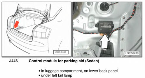 | Parking Aid Control Module | Left rear of luggage compartment. See Figure. |