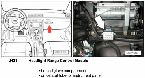| Headlight Range Control Module | Behind glove box. See Figure. |