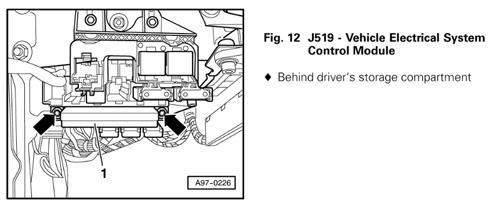 | Vehicle Electrical System Control Module | Behind driver's storage compartment. See Figure. |