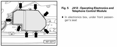| Operating Electronics & Telephone Control Module | Under front passenger's seat. See Figure. |