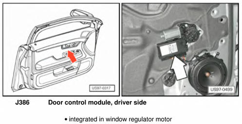 | Door Control Module (Driver Side) | Integrated in driver's door window regulator motor. See Figure. |