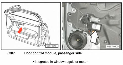 | Door Control Module (Passenger Side ) | Integrated in right front door window regulator motor. See Figure. |