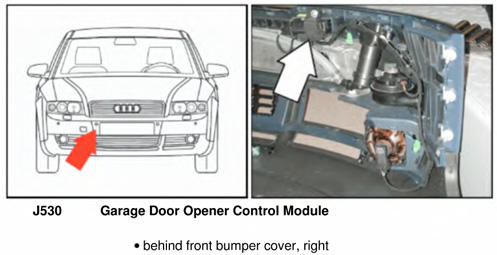 | Garage Door Opener Control Module | Behind right side front bumper cover. See Figure. |