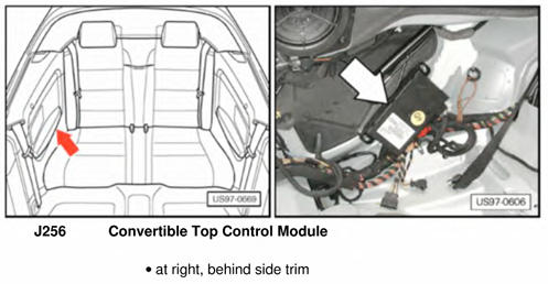 | Convertible Top Control Module | Behind right quarterpanel trim. See Figure. |