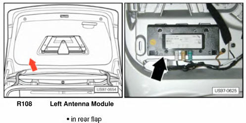 | Antenna Module | In left side of luggage compartment lid. See Figure. |