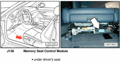 | Memory Seat Control Module | Under front of driver's seat. See Figure. |