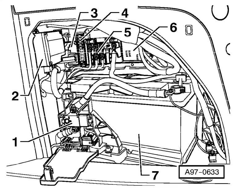 | Radio Receiver & Speech Input Control Module (5) | Left side of luggage compartment. See Figure. |