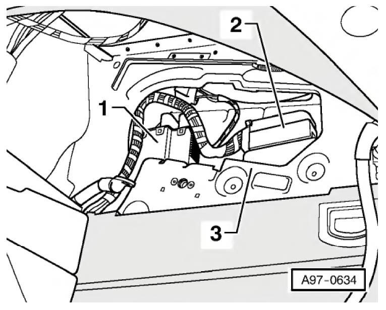 | Fresh Air Blower Control Module | At right rear of engine compartment, next to fresh air blower motor. See Figure. |