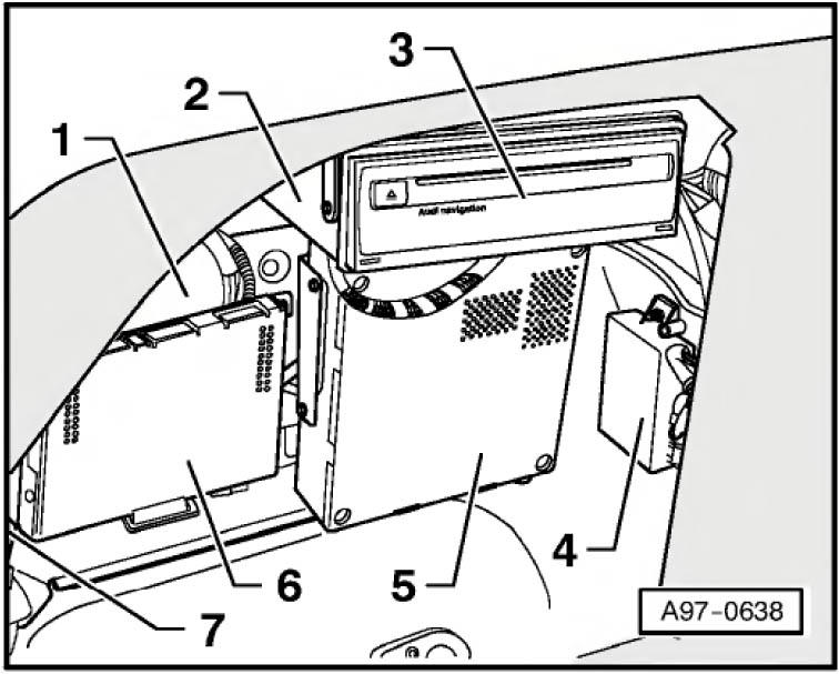 | Navigation System W/CD Drive Control Module (3) | Left side of luggage compartment. See Figure. |