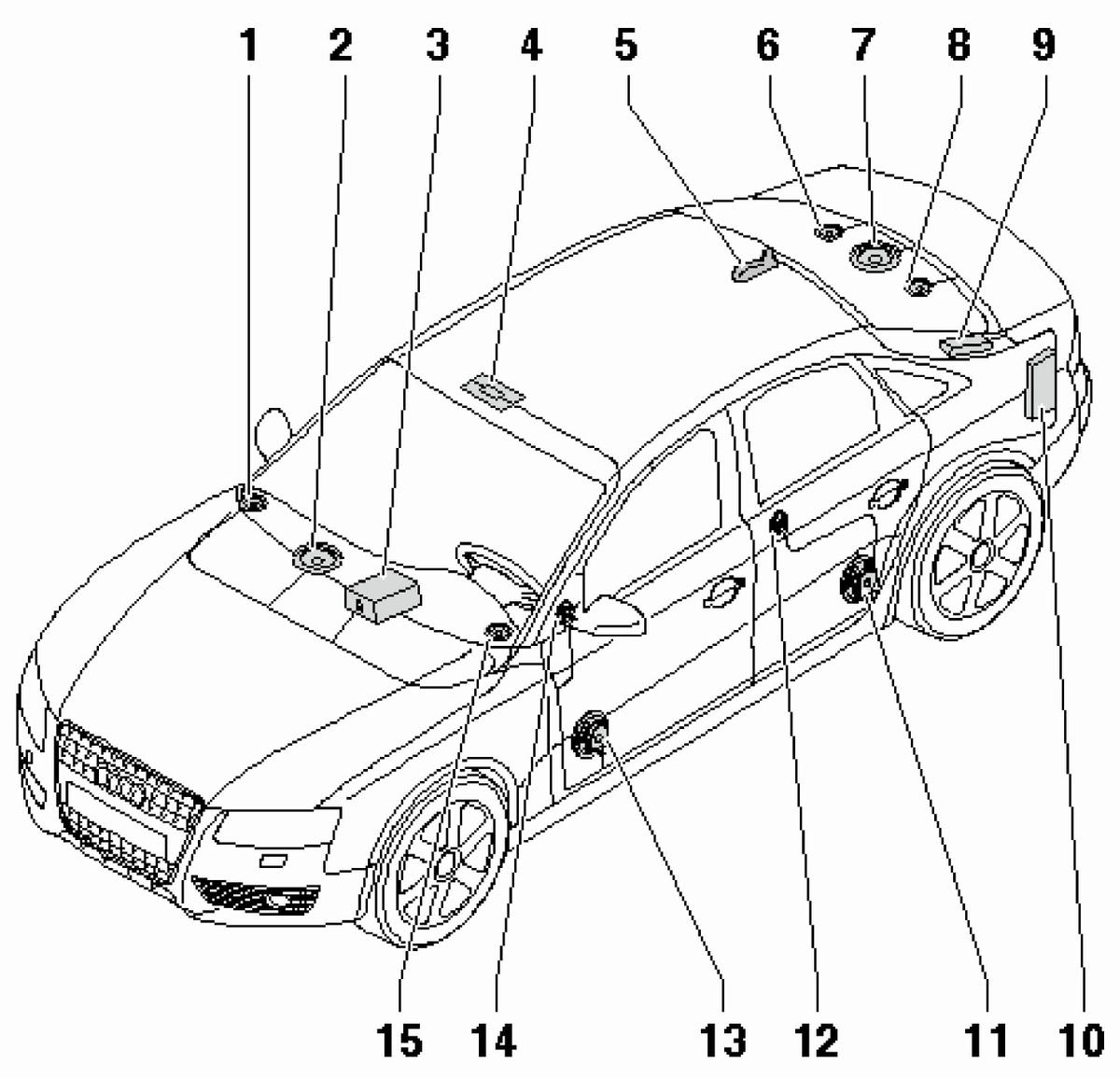 | Digital Sound System Control Module (Avant) (4) | Left rear of cargo area. See Figure. |