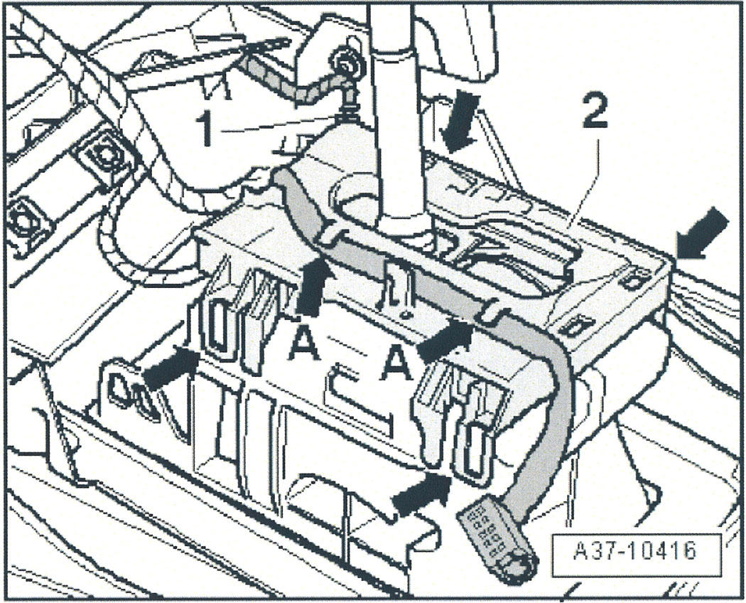 | Battery Monitoring Control Module | Middle of luggage compartment, on battery. |