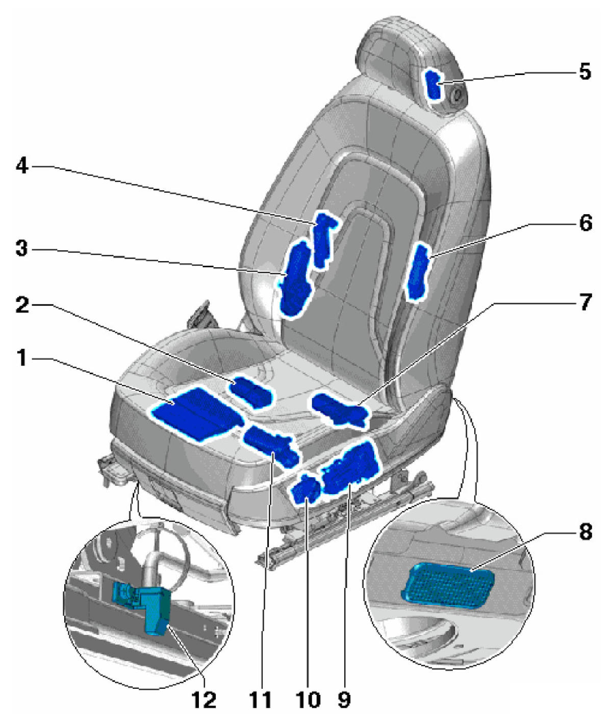 | Seat Ventilation Control Unit (Front Passenger) (12) | Under front passenger's seat cushion. See Figure. |