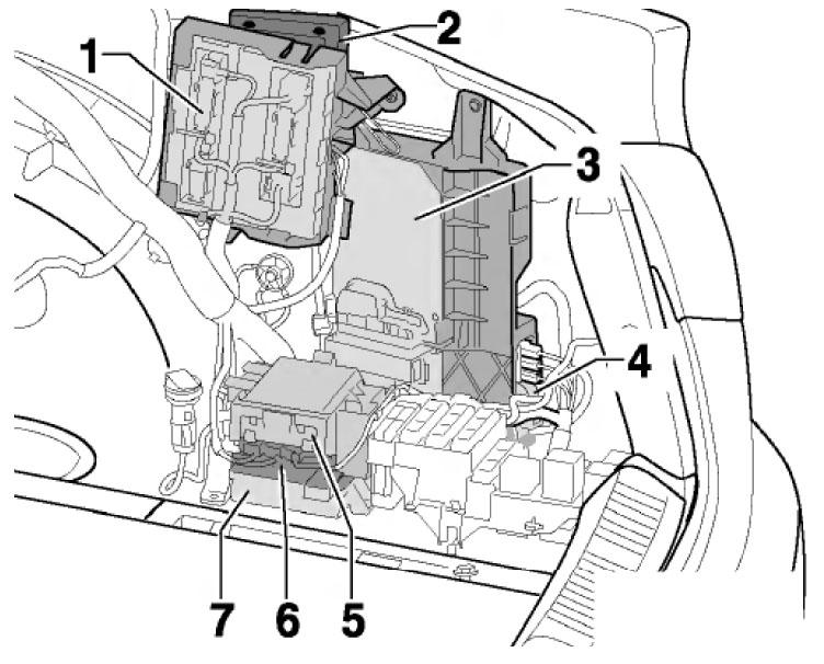 | Vehicle Electrical System Control Module (5) | Under left side of dash. See Figure. |