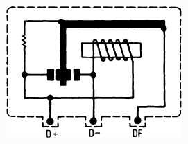 Bosch alternator regulators are two contact, single field units. The field coil of the alternator is grounded and voltage contacts of the regulator are in series with the field.