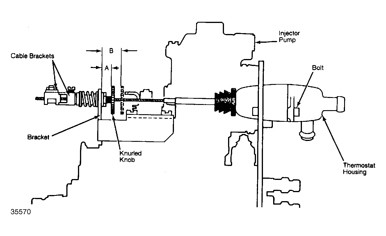 - Set engine at correct warm idle speed. Engine should be at operating temperature. Measure and note distance between knurled head screw and bracket.