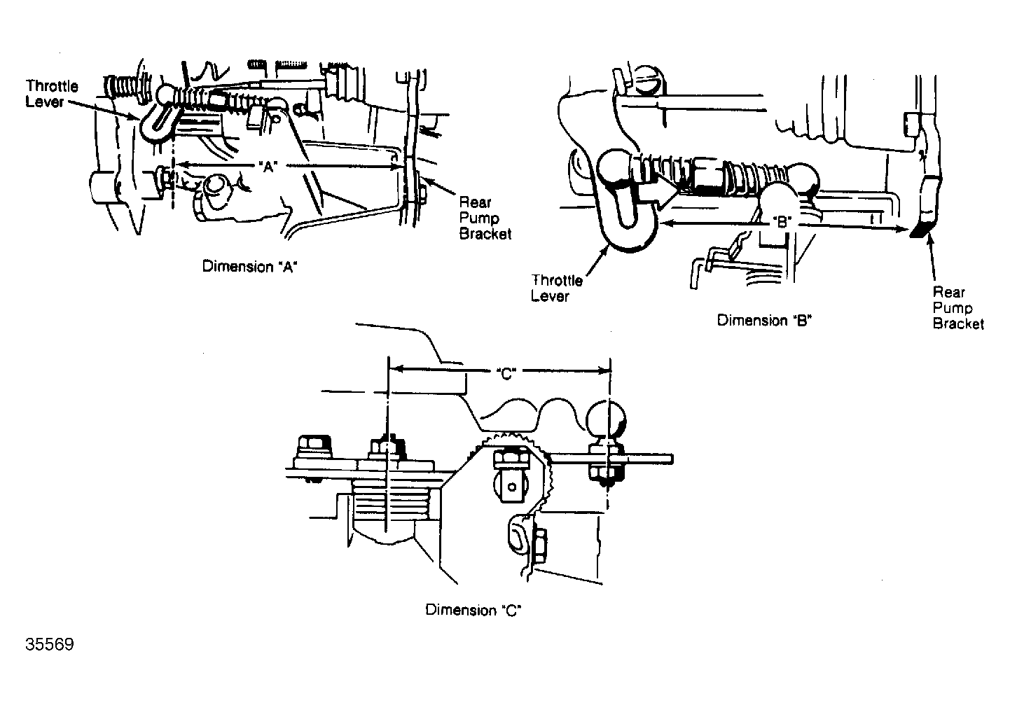 - Again, measure and record distance between pump lever and pump rear bracket (dimension "B"). Subtract dimension "A" from dimension "B". The difference will be referred to as distance dimension "Y".