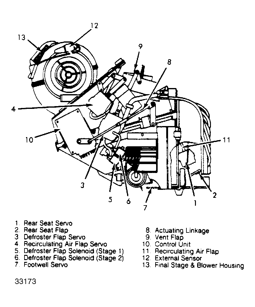 | A/C Control Unit | On left side of evaporator housing. See Figure. |