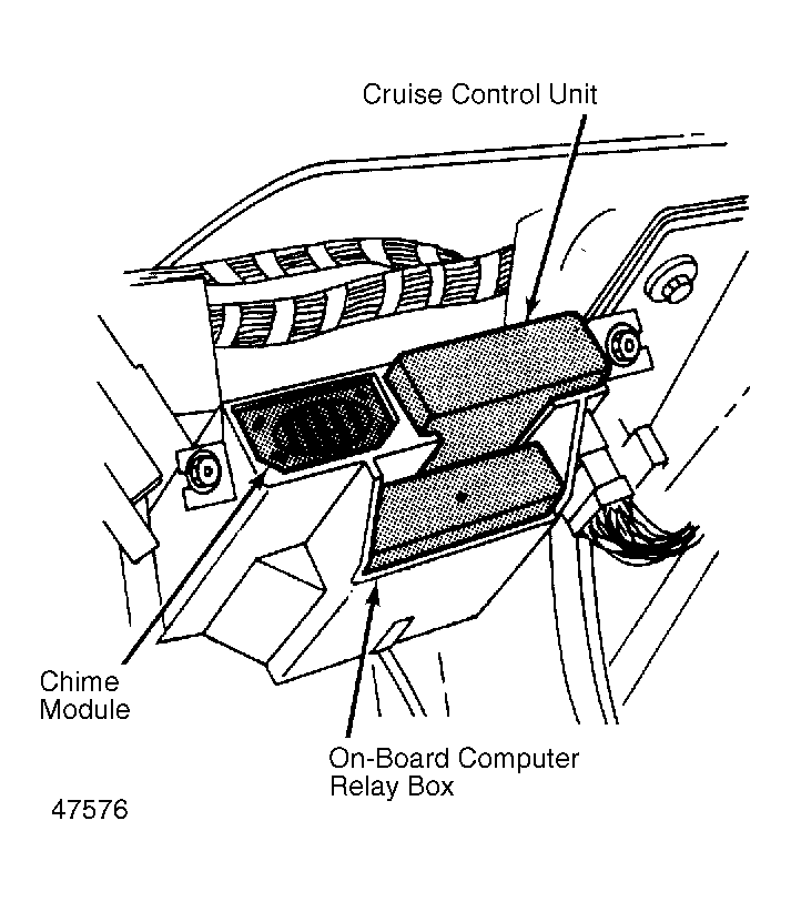 | Cruise Control Unit | Under left side of dash. See Figure . |