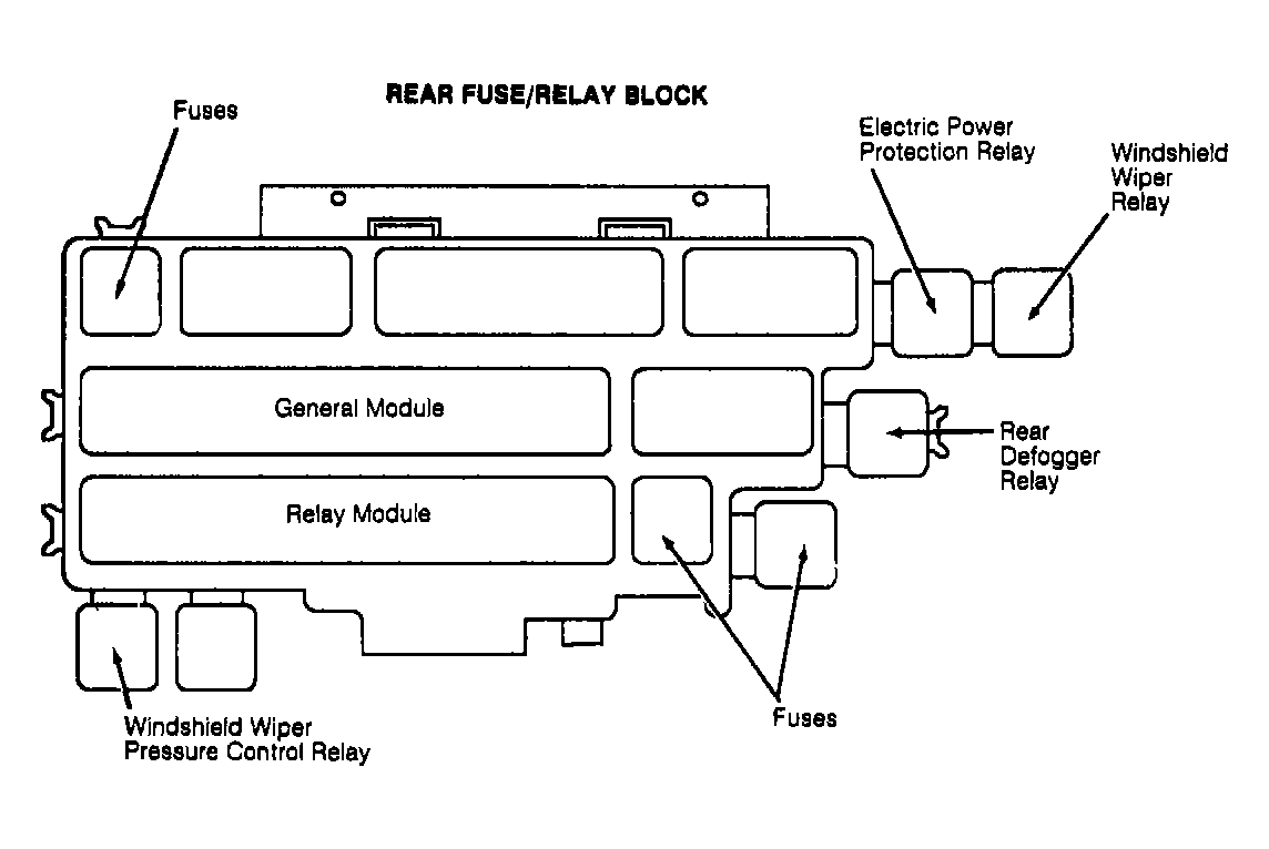 | Relay Module | Under left rear seat, in rear fuse/relay block. See Figure. |