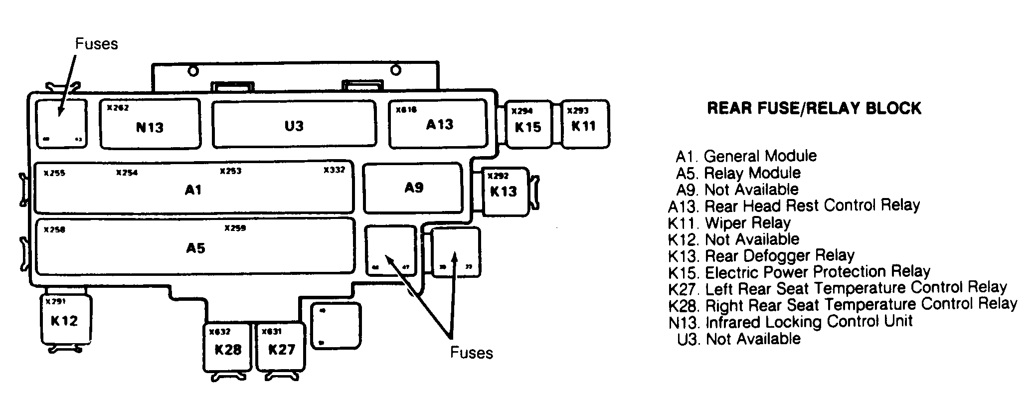 | Infrared Logic Control Unit | In rear fuse/relay block. See Figure . |