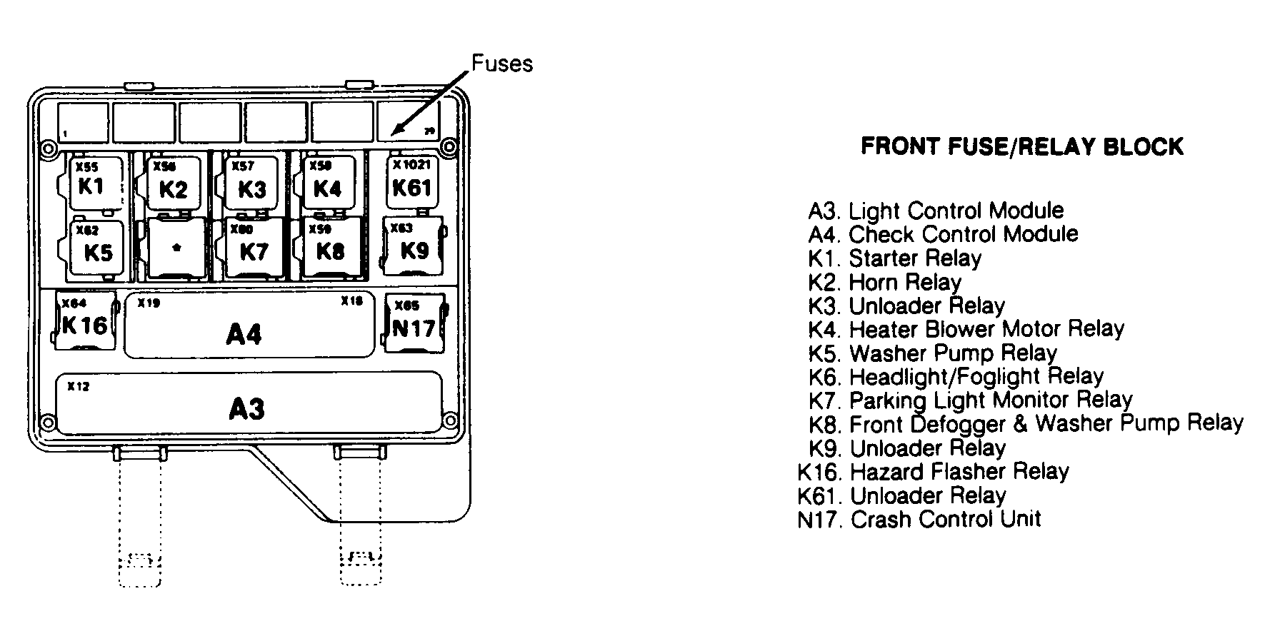 | Crash Control Unit | In front fuse/relay block. See Figure . |